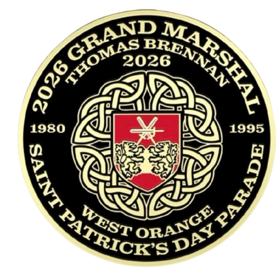 " My pin features the Brennan Family Crest, surrounded by a Dara Celtic Knot-symbolizing strength, endurance and deep roots. The three years - 1980, 1995 and 2026 - represent three generations of Brennans honored as Grand Marshal: my grandfather, my father, and now me." - Tom Brennan